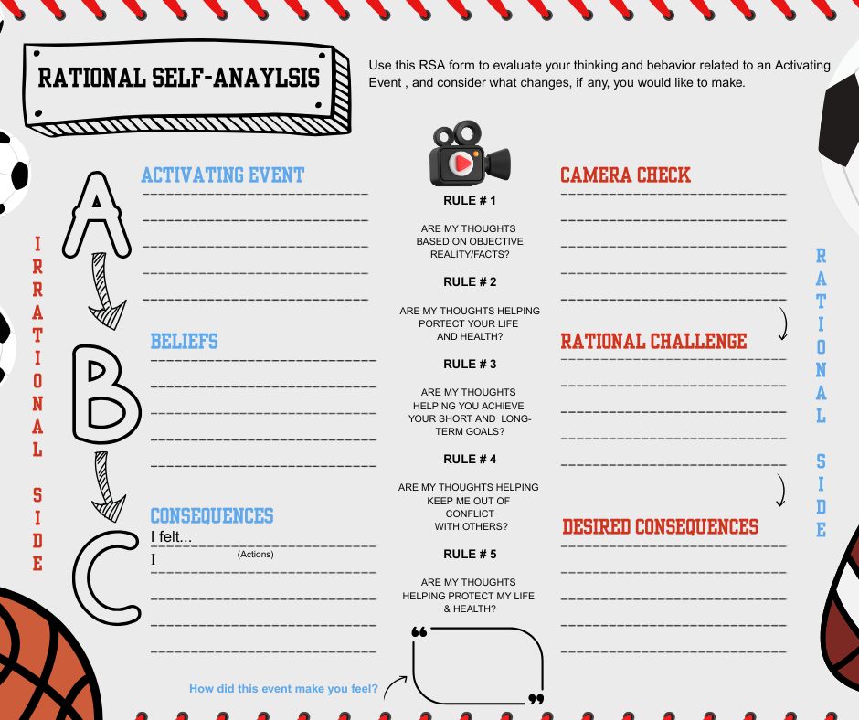 Rational Self Analysis Activities Challenge Irrational thoughts with Rational thinking leading to positive outcomes, enhanced communication skills and forward thinking